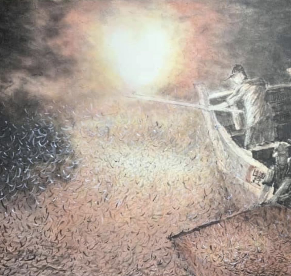 匋東 豐收 尺寸:70x42 cm 媒材:墨,宣紙,水墨 創作年份:2021 NT$ 50,800 我要訂購 ?藝術品購買說明 付款方式:ATM轉帳付款、信用卡線上刷卡、信用卡分期 分期數 每期金額 3期 利率0% NT$ 16,933 6期 NT$ 8,729 12期 NT$ 4,456 作品敘述 運費:NT$ 400 蹦火仔,又稱磺火捕魚或桸仔船,指台灣漁民在夜間利用光源捕魚的傳統文化,因製造火燄時會產生「蹦」的聲響而得名,在金山本地俗稱「桸仔船」。這項技術在2015年登錄為新北市文化資產。全台僅剩新北市金山區的磺港漁港保有此傳統捕魚法,且截至2025年,使用此魚法捕撈的船隻僅剩一艘。 Subject:人物 文化 魚 船 海 Style:自然主義 具象 水 相關藝術品 view all 匋東 如意三仙台,2025 NT$ 33,800 匋東 承傳,2014 NT$ 108,800 匋東 在愛裡永不迷路,2025 NT$ 40,800 匋東 詩篇二十三,2025 NT$ 29,800