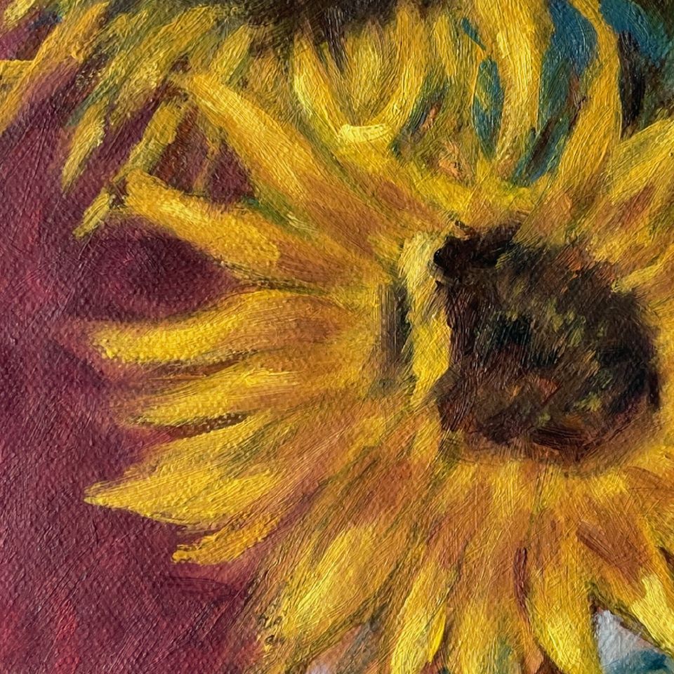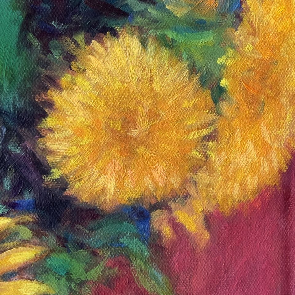 魏安杰 紅色背景中的向日葵 尺寸:41x60.5x2 cm 12 M 媒材:油彩畫布,油畫,畫布 創作年份:2025 NT$ 9,700 我要訂購 ?藝術品購買說明 付款方式:ATM轉帳付款、信用卡線上刷卡、信用卡分期 分期數 每期金額 3期 利率0% NT$ 3,233 6期 NT$ 1,667 12期 NT$ 851 作品敘述 運費:NT$ 350 每當看到向日葵就會聯想到梵谷的畫作——亮黃色的花朵搭配淺黃、淺藍、淺綠色的背景,使畫面充滿張力。而這幅作品則用飽和度較低的紅色作為背景色,搭配一些紫色的花,讓向日葵和黃菊更為鮮活突出。此外,白色花瓶上的花紋和桌面上的圖騰紋路,更增添了整體畫面的活潑和豐富性。 Keywords:花 植物 自然 印象 花瓶 瓶花 靜物 Subject:靜物 圖騰 花草 Style:印象 桌子 葉子 相關藝術品 view all 魏安杰 Valtat02,2025 NT$ 7,700 魏安杰 窗邊的螃蟹蘭,2025 NT$ 5,100 魏安杰 東京小花店,2025 NT$ 9,600 魏安杰 照見玉山,2025 NT$ 9,400