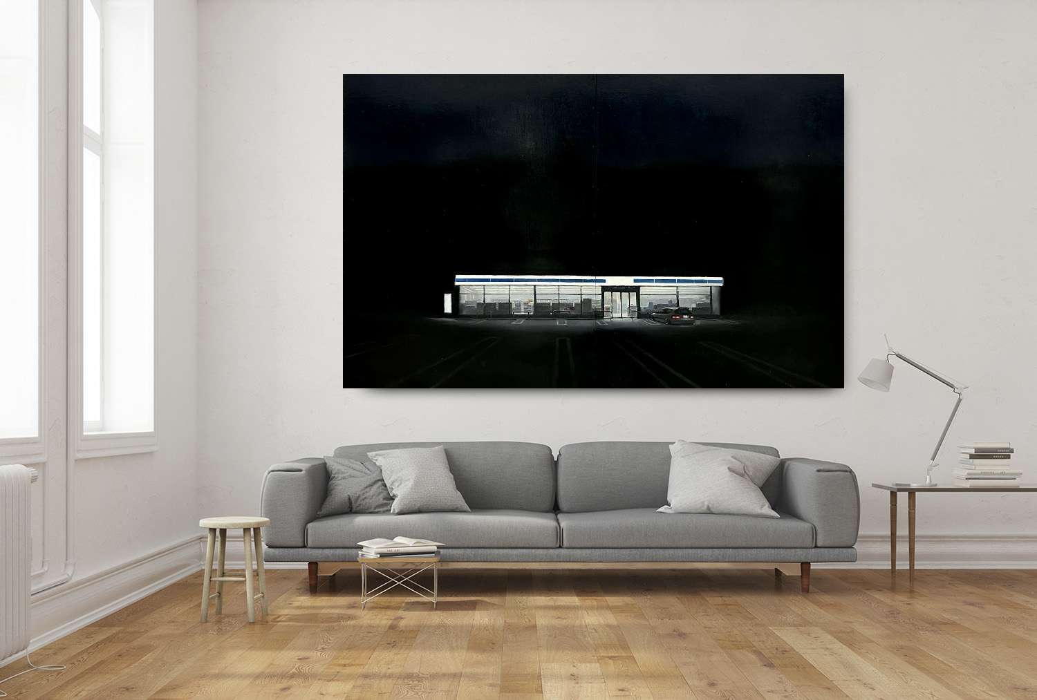 筆者時常沉溺於林間或高速道路上的黑暗場域,這樣與世間脫離的狀態是沉靜的,也是虛無的。透過大量的暗色塊壓制出沉穩的氛圍,並試圖與現實的快節奏做出對抗。在筆者的人生經驗中,架車遠離城市,停泊於一間孤獨豎立的商店,寧靜的冥想著,並聽著汽車待速穩定的引擎聲,專注於當下的環境感知。