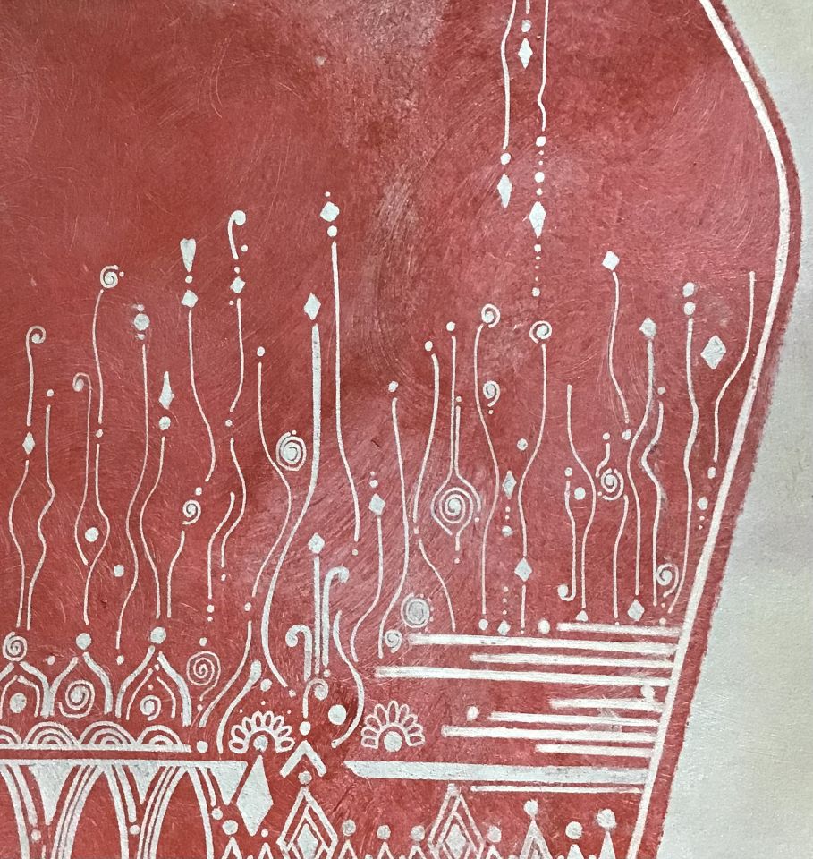 結合各種金色.銀色.紅色系與線條圖案布滿葉面