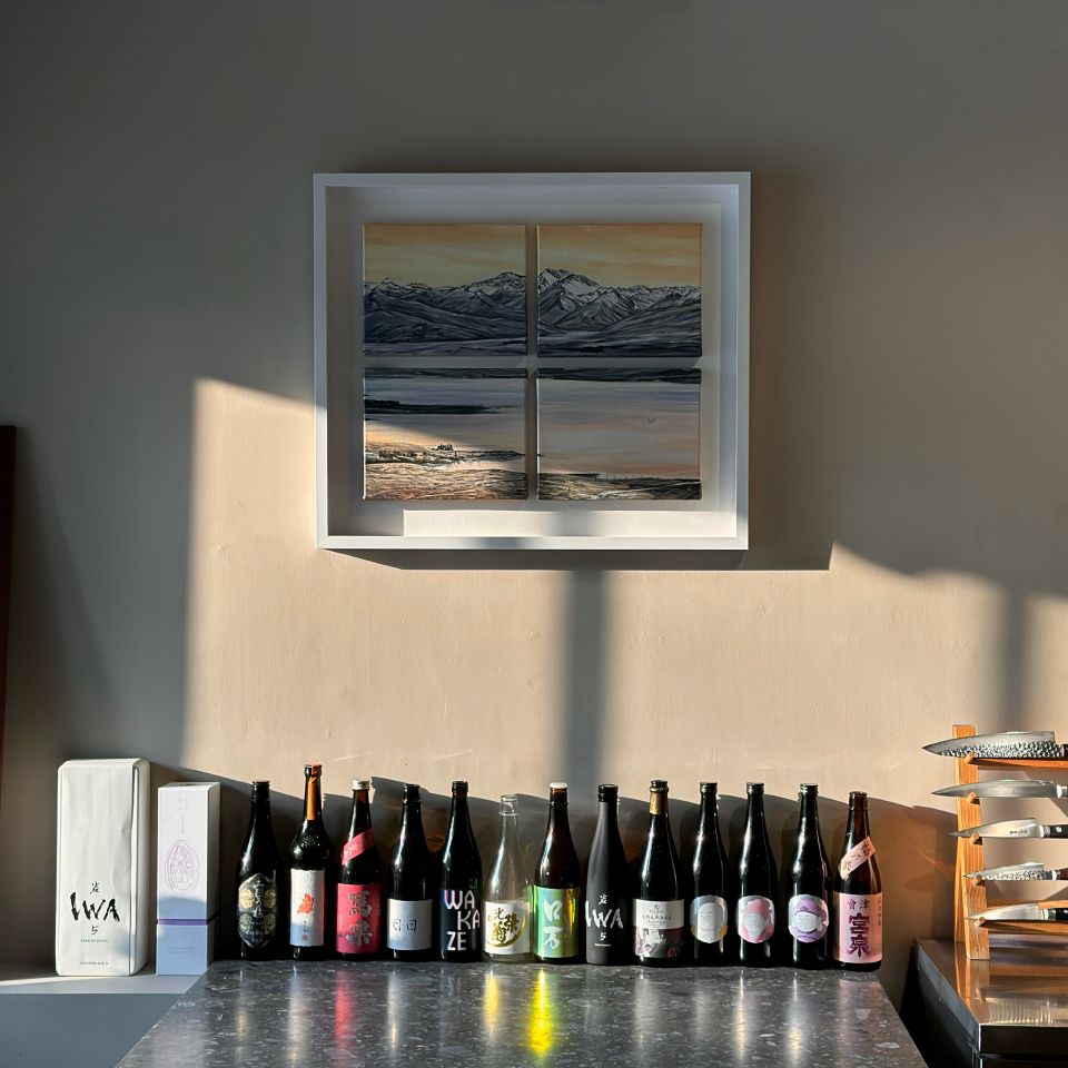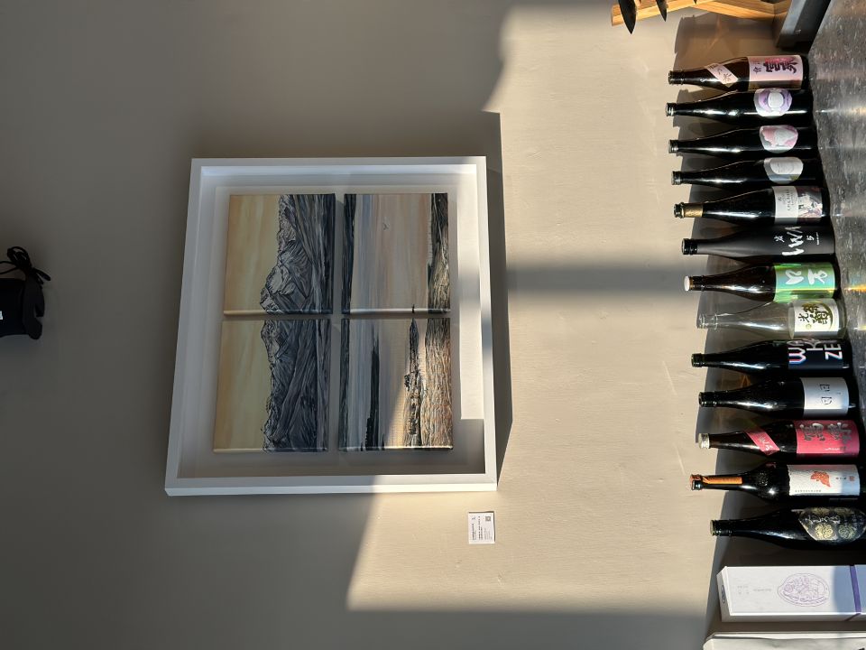 “Visitors Through the Veil” employs a multi-panel format, dividing a majestic landscape into four canvases that echo both fragmentation and continuity, creating a pronounced “fissure.” This fissure is more than just a physical division; it symbolizes the boundaries of time, space, and consciousness. The subtle misalignment and continuation of the mountains and water across the divide evoke a sense of flow between reality and imagination, the known and the unknown. The fissure itself becomes an invitation, prompting viewers to reconsider how we position ourselves between separation and connection.