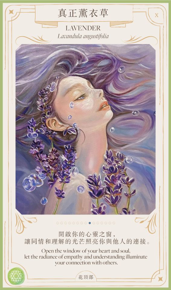 因此,即使真正薰衣草能夠帶來安撫和放鬆的效果,但如果缺乏對他人情感的同情和理解,將難以建立真正的情感連結和溝通。同時,水中的氣泡也象徵著情感的短暫和無常,進一步強調了我們對他人情感的重視和尊重的重要性。因此,這也提醒我們要保持敏感和同情心,並努力理解和支持他人,共同建立一個更加溫暖和關懷的社會。同時也有"等待愛情"和"思念"。象徵著對愛情的浪漫信念和對所愛之人的思念。