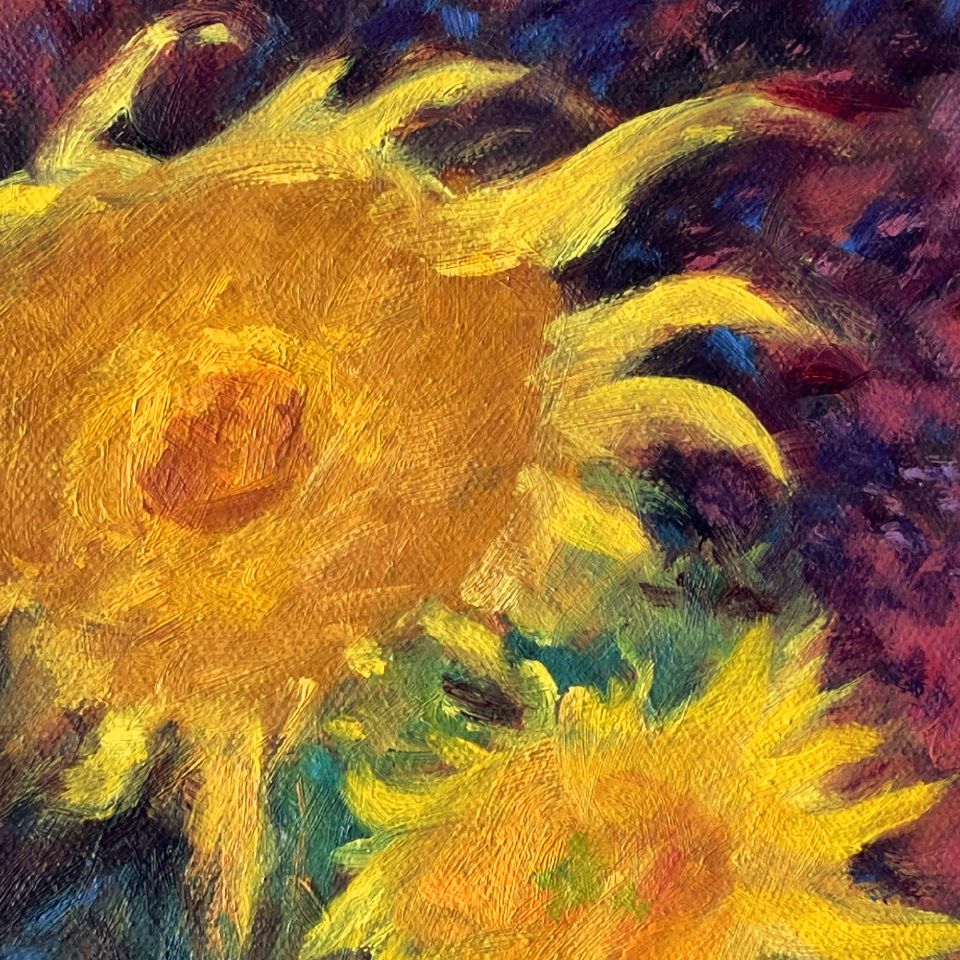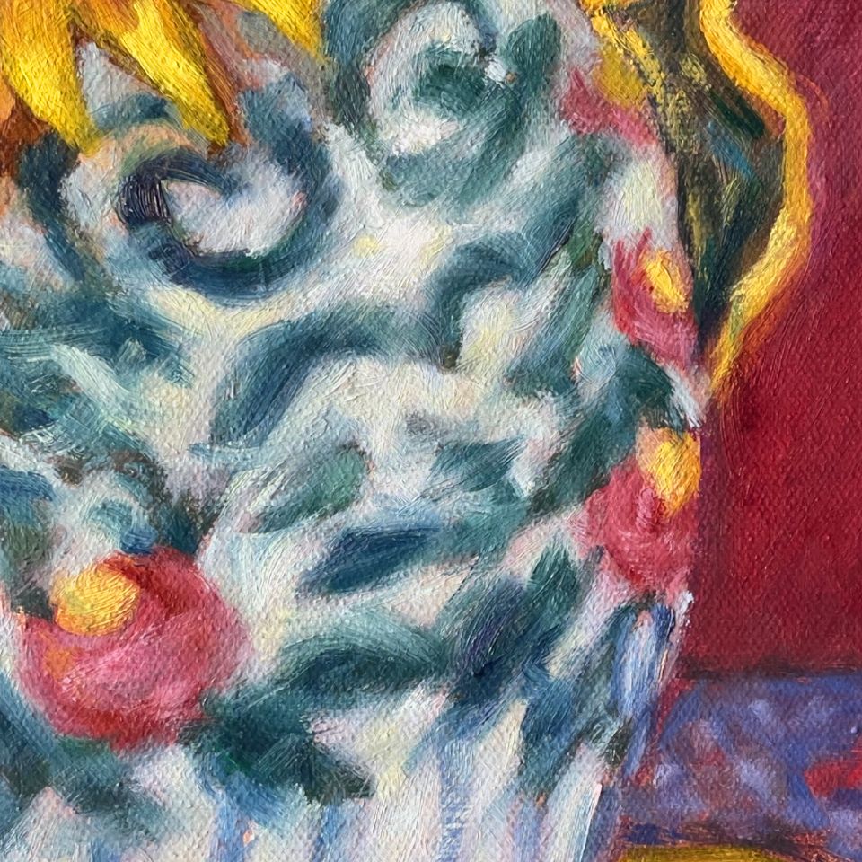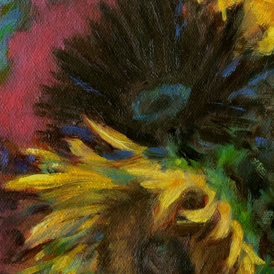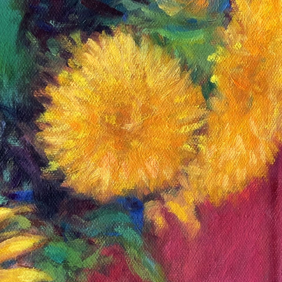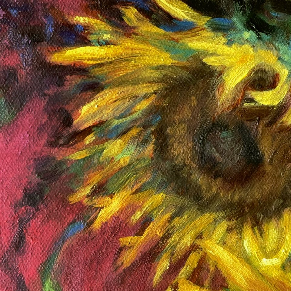 魏安杰 紅色背景中的向日葵 尺寸:41x60.5x2 cm 12 M 媒材:油彩畫布,油畫,畫布 創作年份:2025 NT$ 9,700 我要訂購 ?藝術品購買說明 付款方式:ATM轉帳付款、信用卡線上刷卡、信用卡分期 分期數 每期金額 3期 利率0% NT$ 3,233 6期 NT$ 1,667 12期 NT$ 851 作品敘述 運費:NT$ 350 每當看到向日葵就會聯想到梵谷的畫作——亮黃色的花朵搭配淺黃、淺藍、淺綠色的背景,使畫面充滿張力。而這幅作品則用飽和度較低的紅色作為背景色,搭配一些紫色的花,讓向日葵和黃菊更為鮮活突出。此外,白色花瓶上的花紋和桌面上的圖騰紋路,更增添了整體畫面的活潑和豐富性。 Keywords:花 植物 自然 印象 花瓶 瓶花 靜物 Subject:靜物 圖騰 花草 Style:印象 桌子 葉子 相關藝術品 view all 魏安杰 黑豹面,2025 NT$ 3,400 魏安杰 Valtat02,2025 NT$ 7,700 魏安杰 窗邊的螃蟹蘭,2025 NT$ 5,100 魏安杰 東京小花店,2025 NT$ 9,600