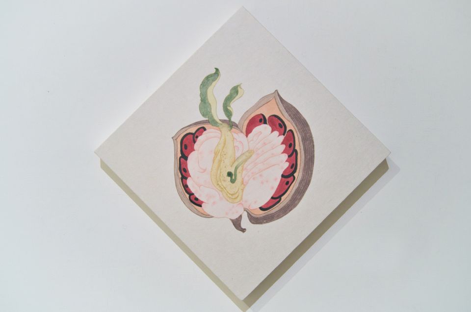 陳姿妤 肉果核莢 / Fleshy Fruit Pod 尺寸:25x25 cm 媒材:含框(簡易框),墨,宣紙,工筆,彩墨,書畫,木板,木板裱紙,木框,水墨,畫紙,礦彩,礦物顏料,簡裱,紙上作品,紙本,紙本設色,胡粉,膠彩,設色 創作年份:2022 NT$ 15,000 我要訂購 ?藝術品購買說明 付款方式:ATM轉帳付款、信用卡線上刷卡、信用卡分期 分期數 每期金額 3期 利率0% NT$ 5,000 6期 NT$ 2,577 12期 NT$ 1,316 作品敘述 運費:NT$ 250 果莢內夾帶著鮮紅色種子,核心處長了一團肉體組織般的果肉,綠芽從其中迸出而生長。作品可多角度觀賞。 The pod contains bright red seeds, with a fleshy, tissue-like core at its center, from which green sprouts burst forth and grow. The piece can be viewed from multiple angles. Keywords:水墨 當代 植物 果實 種子 Subject:蔬果 花草 Style:自然主義 抽象 裝飾 象徵 未來 葉子 相關藝術品 view all 陳姿妤 瘤豆芽 / Tumor Bean Sprout,2022 NT$ 9,900 陳姿妤 剖露真心 / Split Open to Reveal the Real Thing,2022 NT$ 56,000 陳姿妤 結胎囊花 / Embryonic Sac Blossom,2022 NT$ 60,000 陳姿妤 融生狀態 2.0 / State of Melting Growth 2.0,2022 作品已售出NT$ 66,000