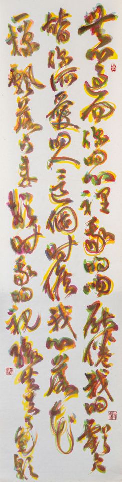 黃奕璇 完成之前 尺寸:175x140 cm 包含音樂感應器 媒材:書法 創作年份:2025 NT$ 180,000 我要訂購 ?藝術品購買說明 付款方式:ATM轉帳付款、信用卡線上刷卡、信用卡分期 分期數 每期金額 3期 利率0% NT$ 60,000 6期 NT$ 30,928 12期 NT$ 15,789 作品敘述 運費:NT$ 1,600 本系列源自我童年學習書法的經驗,聚焦「重複書寫」的過程。作品由四張對開行草書法構成,同一段歌詞被反覆書寫,書寫次數由左至右逐步遞減至一次,呈現重複如何在修正與累積的過程中,逐漸收斂為單一、看似穩定的結果。然而在創作過程中,我開始反思所謂的標準與完美,究竟是誰定義的?它是否只是規範與框架下的答案? 作品內容為伍佰〈淚橋〉的一段歌詞,搭配感應裝置,靠近時播隨即播放音樂。 Keywords:書法 Subject:音樂 Style:書法 相關藝術品 view all 黃奕璇 方格之外-英文草寫,2025 NT$ 75,000 黃奕璇 方格之外-行草,2025 NT$ 55,000 黃奕璇 方格之外-篆書,2025 NT$ 82,000 黃奕璇 方格之外-楷書,2025 NT$ 147,000