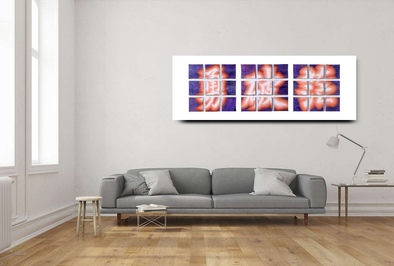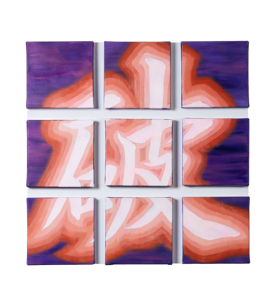 隨著成長,我逐漸意識到這樣的「格子」不只存在於紙上,也存在於人生的各種框架之中。於是,我將九宮格的畫布拆解,讓文字走出既定結構,在空間中尋找新的位置。