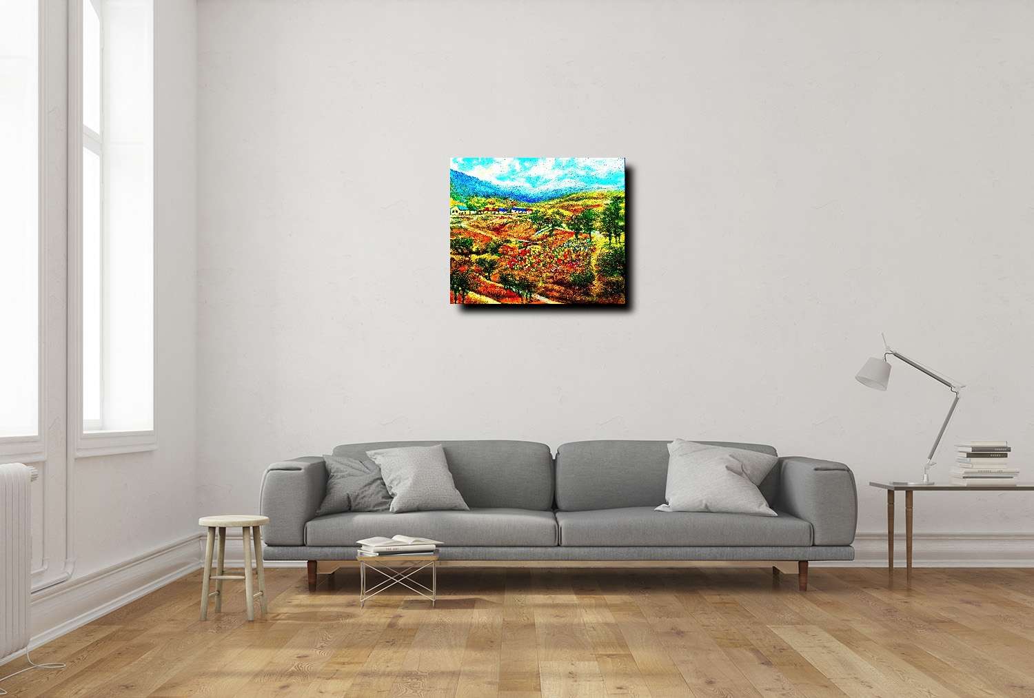 這幅油畫展現了一個生動的鄉村景色,整體風格上有著後印象派的影響。畫作中顯現出運用了點描法及厚重的顏料,這樣的技法使得畫面中的色彩有更強的層次感和視覺衝擊力。