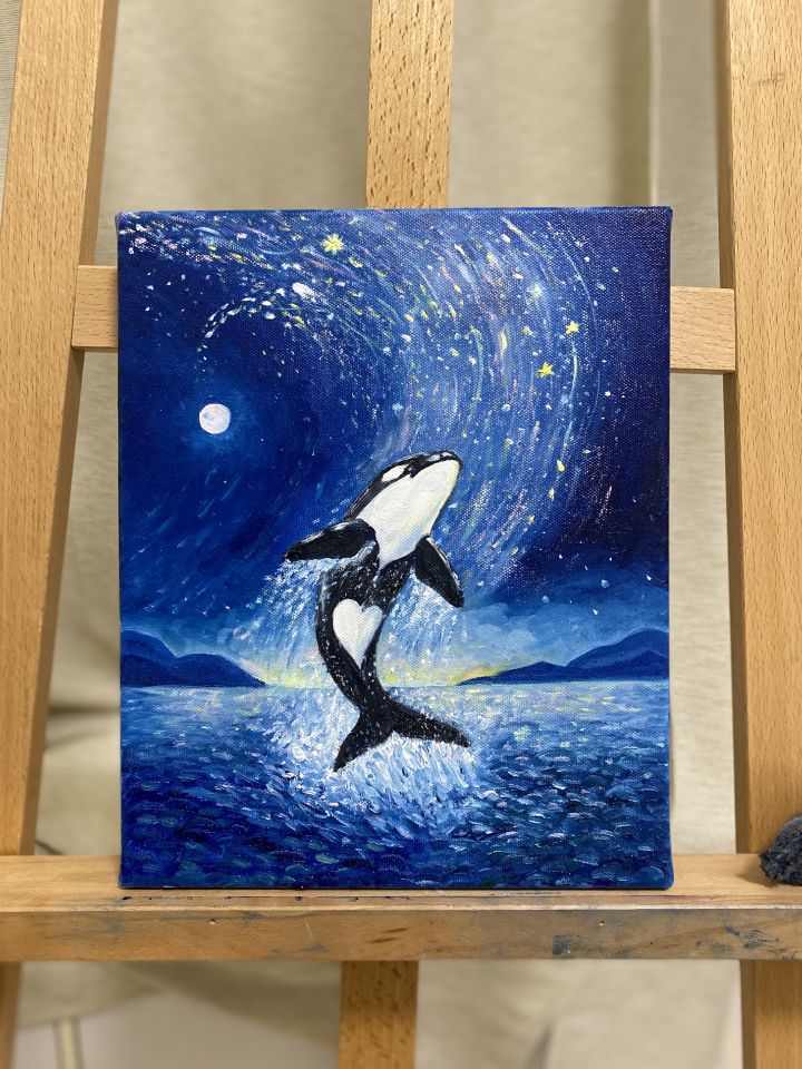 陳家安 追夢之鯨—The Orca and the Stars 尺寸:24x33 cm 媒材:油畫,畫布 創作年份:2025 NT$ 5,200 我要訂購 ?藝術品購買說明 付款方式:ATM轉帳付款、信用卡線上刷卡、信用卡分期 分期數 每期金額 3期 利率0% NT$ 1,733 6期 NT$ 893 12期 NT$ 456 作品敘述 運費:NT$ 250 你曾經追逐過像星星一樣遙遠的夢想嗎? 這隻虎鯨做到了,相信自己也可以達成。 因為, 「當你真心渴望某件事時,整個宇宙都會聯合起來幫助你。」——《牧羊少年奇幻之旅》 Keywords:虎鯨 星星 星空 夜空 大自然 海洋 夢想 追夢 海 Subject:風景 動物 海 Style:超現實 具象 插畫 表現主義 象徵 水 夜色 天空 相關藝術品 view all 陳家安 豐盛之喜—Delight in Abundance,2026 作品已售出NT$ 5,200 陳家安 大地之母—Mother Earth,2026 NT$ 5,500