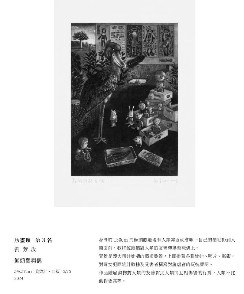 劉芳汝 鯨頭鸛與偶 尺寸:28x39 cm 3/25 媒材:銅版畫 創作年份:2024 NT$ 28,000 我要訂購 ?藝術品購買說明 付款方式:ATM轉帳付款、信用卡線上刷卡、信用卡分期 分期數 每期金額 3期 利率0% NT$ 9,333 6期 NT$ 4,811 12期 NT$ 2,456 作品敘述 運費:NT$ 300 美柔汀 含框,無酸裱褙 Subject: Style: 相關藝術品 view all 劉芳汝 生產線,2022 NT$ 5,600 劉芳汝 窗外,2025 NT$ 5,600 劉芳汝 滬尾馬偕街,2024 NT$ 18,000 劉芳汝 我的撲克牌友們,2025 NT$ 6,000
