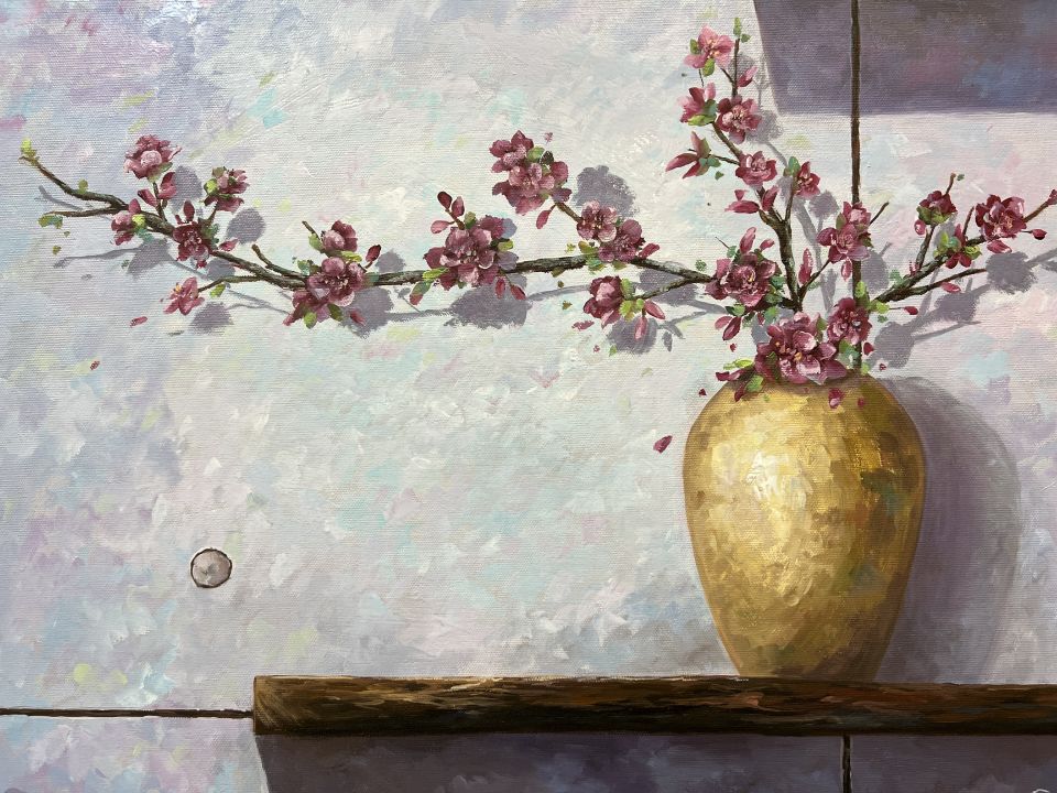 吳家綾 金色瓶中的櫻花 Sakura in Gold 尺寸:72.5x60.5 cm 20 F 媒材:油彩,油彩畫布,油畫,畫布 創作年份:2026 NT$ 999,999,999 我要訂購 ?藝術品購買說明 付款方式:ATM轉帳付款、信用卡線上刷卡、信用卡分期 分期數 每期金額 3期 利率0% NT$ 333,333,333 6期 NT$ 171,821,306 12期 NT$ 87,719,298 作品敘述 運費:NT$ 450 又到了櫻花的季節 折下櫻花枝條插入瓶中 為屋內增添春天的氣息 我用繽紛的色彩,一改清水模一貫的灰色冷調 選擇璀璨金光的花瓶 簡樸中略帶些貴氣 Keywords:櫻花 金色 花瓶 清水模 春天 sakura gold vase spring Subject:靜物 花草 櫻花 Style:寫實 相關藝術品 view all 吳家綾 初春的客家風情 Hakka Charm in Early Spring,2026 作品已售出NT$ 9,999,999 吳家綾 悠遊葡萄園 Wandering in the vineyards,2023 NT$ 9,999,999 吳家綾 苔上的楓 Maple on Moss,2026 NT$ 9,999,999 吳家綾 銀杏樹下的約會 Ginkgo Rendezvous,2026 NT$ 9,999,999