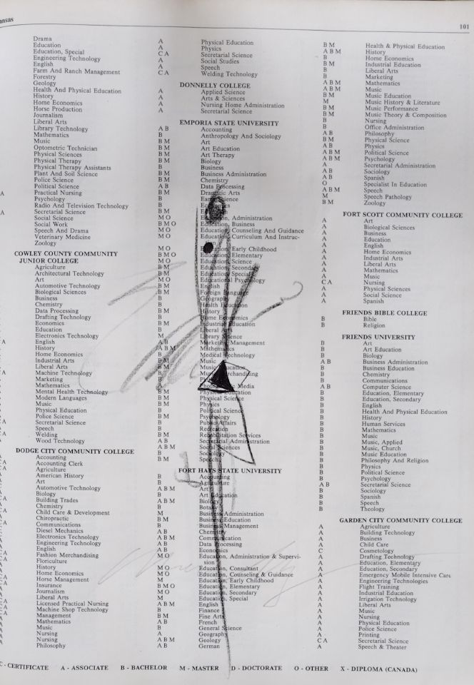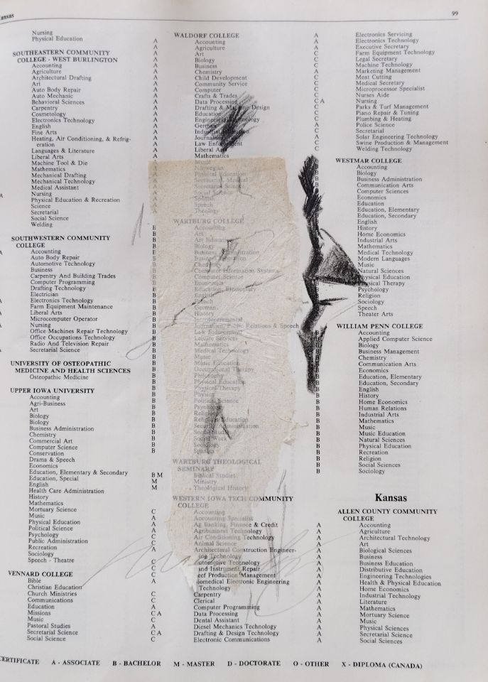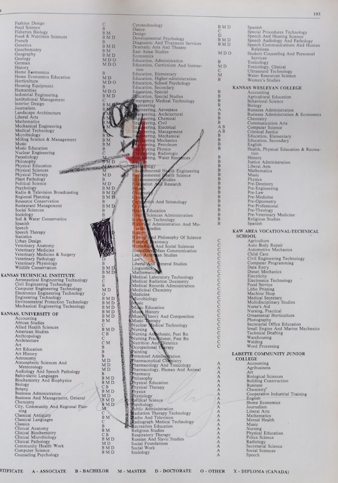 風格: 這種將隨性的手繪草圖與刻板的印刷清單並置的手法,創造出一種對比美學。它可能在探討個人情感、創造力與體制化、學術框架之間的關係。